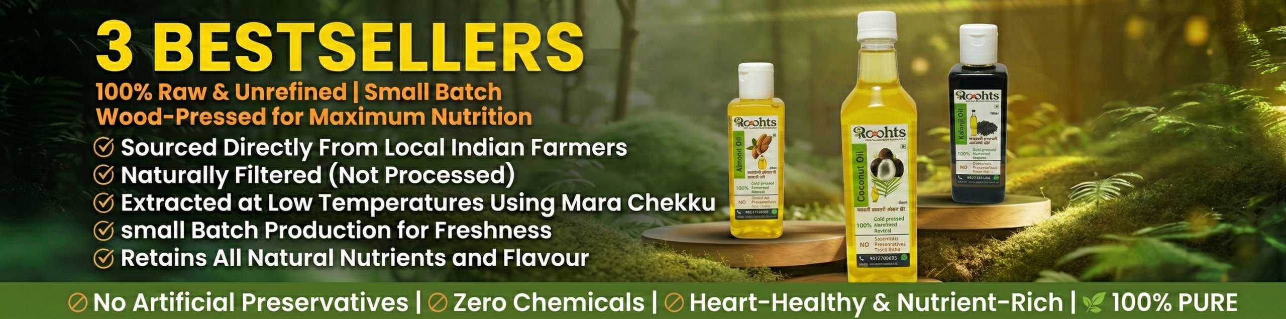 Discover a healthier culinary journey with Roohts. Our cold-pressed oils are more than just tasty; they're a commitment to your well-being. Choose us for an exquisite selection that combines rich flavors with nutritional excellence. From heart-healthy options to antioxidant-packed varieties, our oils stand out for their farm-to-bottle transparency and sustainable practices. Elevate your cooking and health simultaneously – make the smart choice with Roohts.